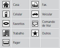 Até três ícones são exibidos para cada registro da agenda telefônica. Se houver mais do que três números para um registro,... será exibido.