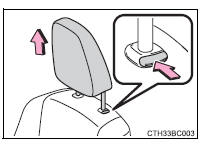 Empurre o encosto de cabeça para baixo, enquanto pressiona a tecla de destrancamento.