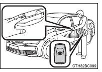 Quando a porta não pode ser trancada pelo sensor de trancamento na parte superior do manípulo da porta (veículos com sistema de chave inteligente para entrada e arranque)